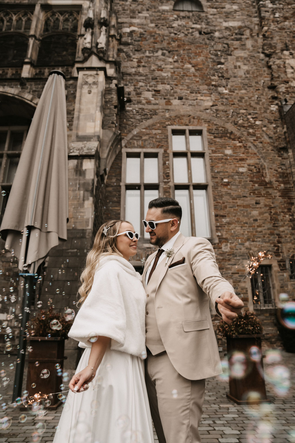 Der anliegende Marktplatz bietet ein wunderschönes, historisches Ambiente für das anschließende Fotoshooting des frisch vermählten Brautpaares nach der standesamtlichen Trauung und lässt mir, als ihr Hochzeitsfotograf aus Aachen, die Freiheit vielerlei Shootingmöglichkeiten – welche zu Fuß erreichbar sind.